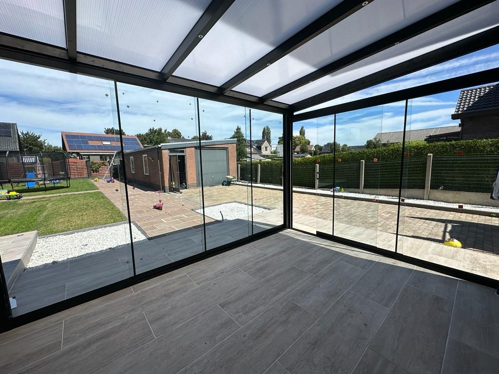 In het schilderachtige Riemst, België, kregen we de kans om een veranda te plaatsen die niet alleen een toevoeging aan het huis zou zijn, maar een oase van comfort en sereniteit voor onze gewaardeerde klant. Met een visie op verfijning en functionaliteit, bestelde de klant een veranda van 5 meter breed en 3 meter diep, bekroond met een polycarbonaat dak dat het zonlicht filtert en een warme gloed verspreidt over de ruimte.