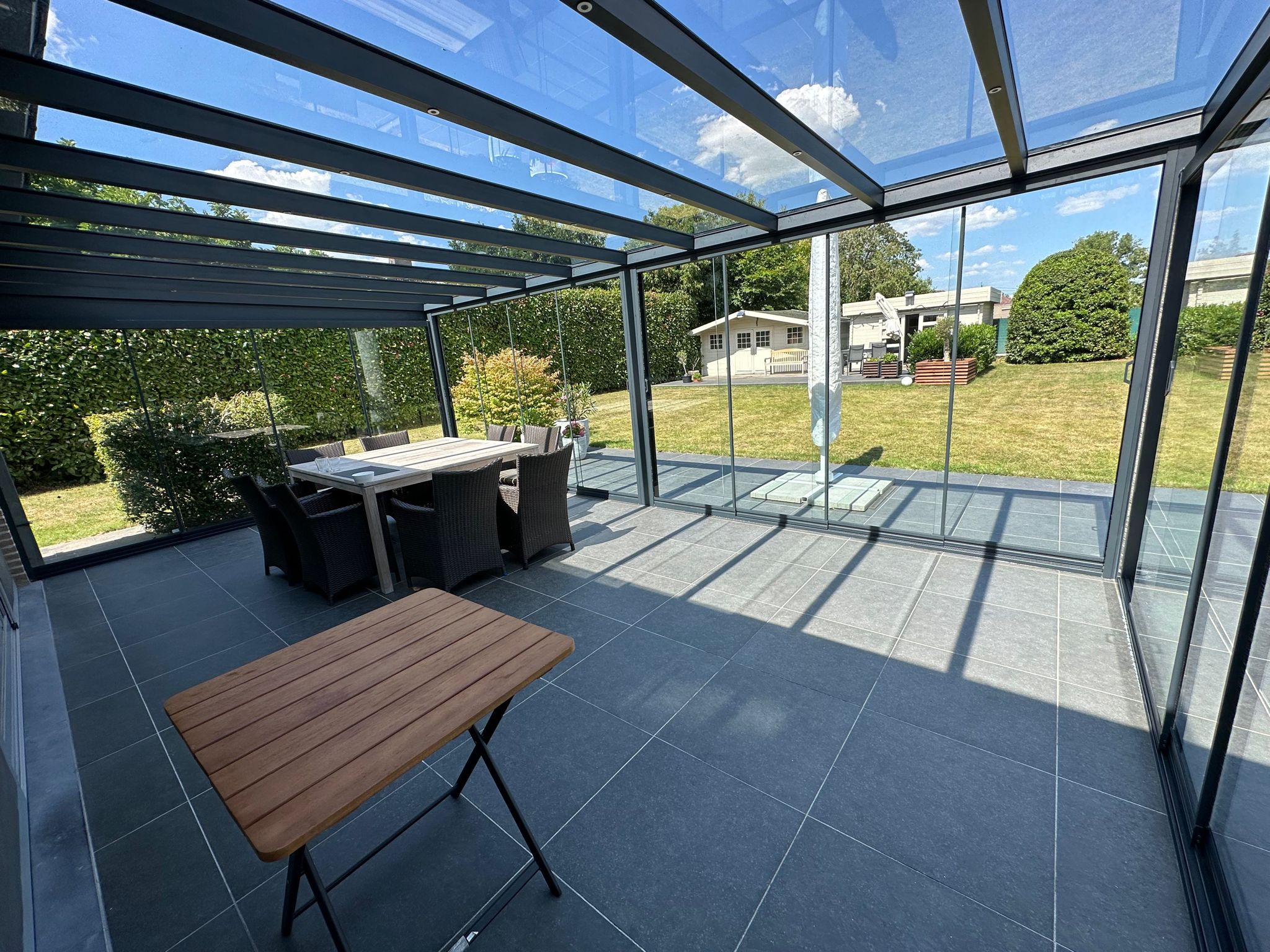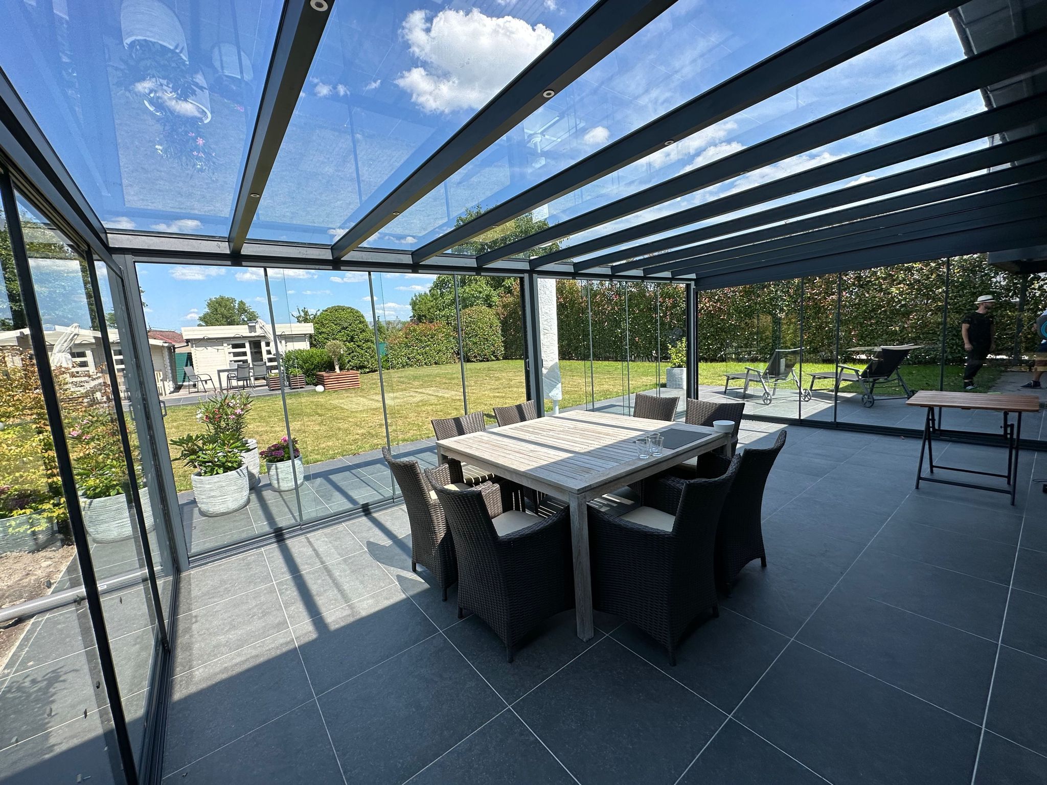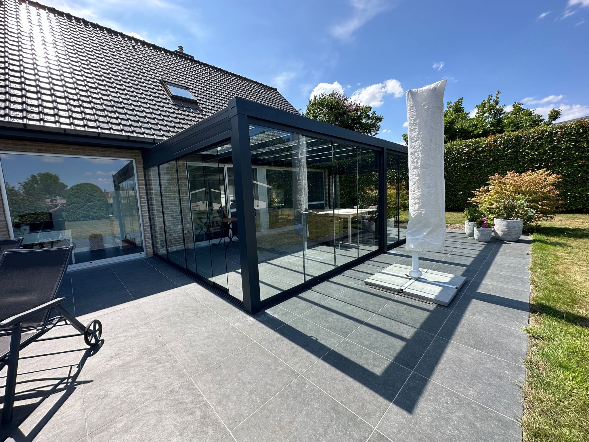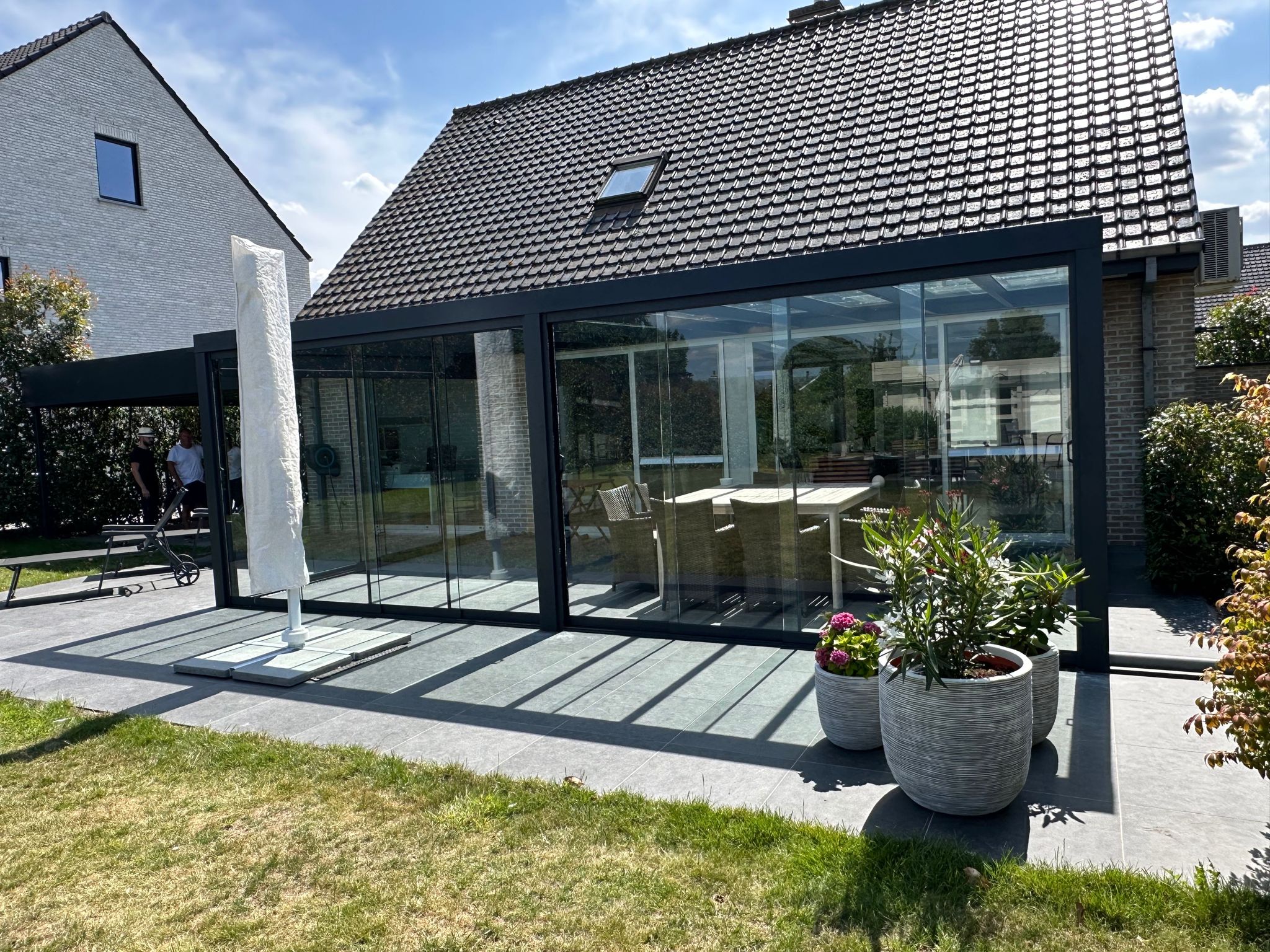 Tegen het vallen van de avond stond daar onze creatie, een symfonie van glas en staal die de zonnestralen ving en de omliggende omgeving omarmde. Een veranda die niet alleen een uitbreiding van het huis was, maar een ware levensstijlverbetering voor onze gewaardeerde klant.